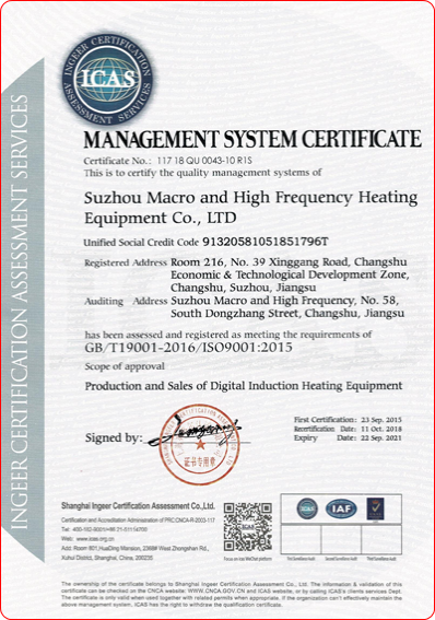 蘇州宏創高頻加熱設備有限公司位于江蘇省蘇州市常熟經濟技術開發區內,是一家科技型高新技術企業,公司擁有全數字、智能型感應加熱核心專利,專注于全系列數字化感應加熱電源及自動化生產線的研發、生產和銷售,產品涉及航空航天、機械制造、電力電子、五金機電、五金工具、制冷暖通等行業及領域。